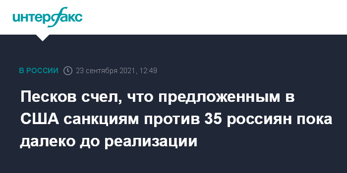 Песков счел, что предложенным в США санкциям против 35 россиян пока далеко до реализации