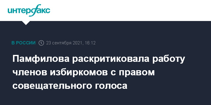 Москва. 23 сентября. INTERFAX.RU - Многие члены избирательных комиссий с правом совещательного голоса усложняли и пытались дезорганизовать работу на прошедших выборах, заявила глава ЦИК РФ Элла Памфилова.