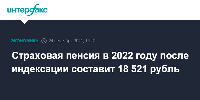 "Проектом бюджета Пенсионного фонда среднегодовой размер страховой пенсии по старости неработающих пенсионеров предусмотрен в 2022 году 18 тыс. 521 рублей (16 тысяч 789 рублей на 1 января 2021 года - ИФ) с ростом в рамках параметров, которые предусмотрены бюджетом", - сообщила Голикова на заседании Российской трехсторонней комиссии в пятницу.