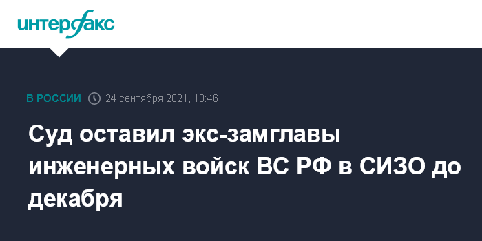 Суд оставил экс-замглавы инженерных войск ВС РФ в СИЗО до декабря