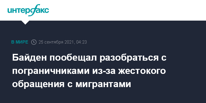 Москва. 25 сентября. INTERFAX.RU - Президент США Джо Байден заявил, что "люди заплатят" после того, как появились изображения, на которых пограничники загоняют мигрантов верхом на лошадях обратно в реку, сообщает BBC News.