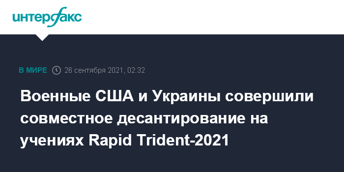 Москва. 26 сентября. INTERFAX.RU - В рамках многонациональных учений Rapid Trident - 2021 состоялось совместное десантирование десантно-штурмовых войск Вооруженных сил Украины (ВСУ), военнослужащих США и других подразделений стран-партнеров, сообщило командование Десантно-штурмовых войск ВСУ в фейсбуке.