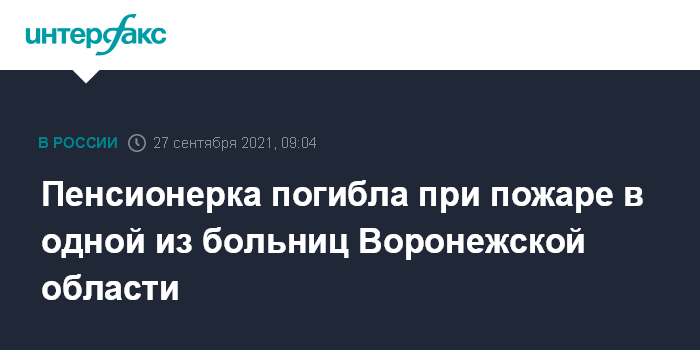 Пенсионерка погибла при пожаре в одной из больниц Воронежской области