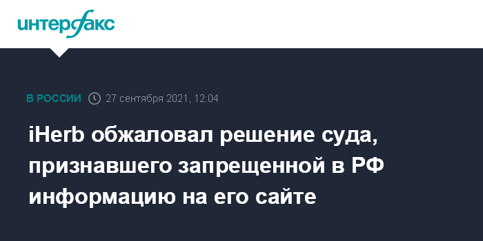 Ранее о намерении обжаловать решение суда "Интерфаксу" сообщал гендиректор iHerb в России Илья Микин. "Мы считаем, что решение суда чрезмерное и не отвечает духу закона 149-ФЗ. На наш взгляд, нельзя полностью блокировать важный ресурс, которым пользуются миллионы пользователей, а также который содержит тысячи разных категорий продукции. Мы будем добиваться справедливого решения в следующей инстанции", - сказал тогда он.