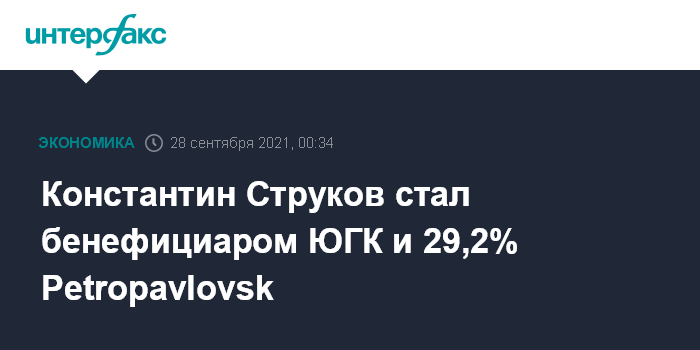 Москва. 28 сентября. INTERFAX.RU - Владельцем 29,2% Petropavlovsk через свои структуры стал Константин Струков, следует из сообщений на LSE.