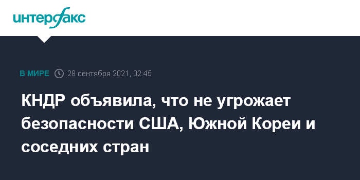КНДР объявила, что не угрожает безопасности США, Южной Кореи и соседних стран