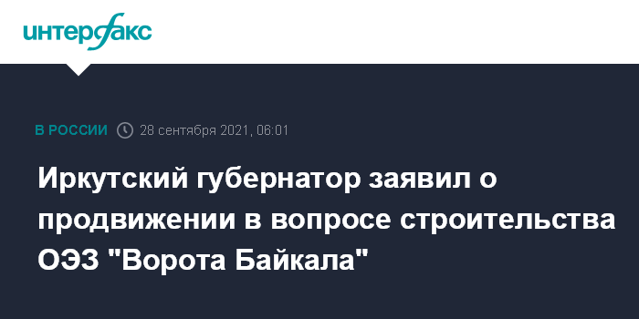 Иркутский губернатор заявил о продвижении в вопросе строительства ОЭЗ "Ворота Байкала"