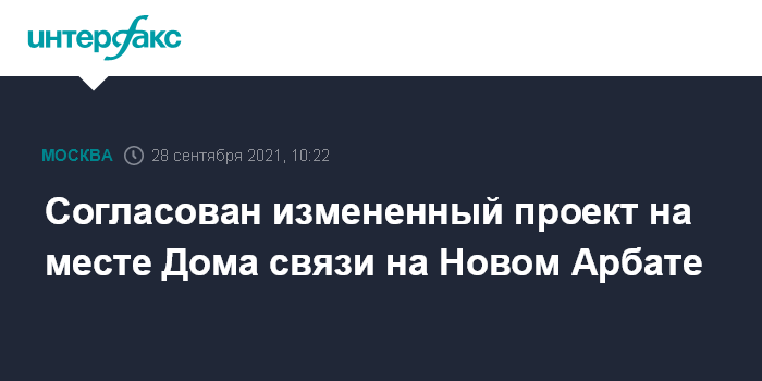 Москва. 28 сентября. INTERFAX.RU - Согласован проект реконструкции Дома связи на Новом Арбате, д.2, сообщили в пресс-службе Москомархитектуры.