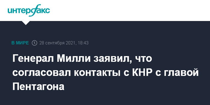 Генерал Милли заявил, что согласовал контакты с КНР с главой Пентагона