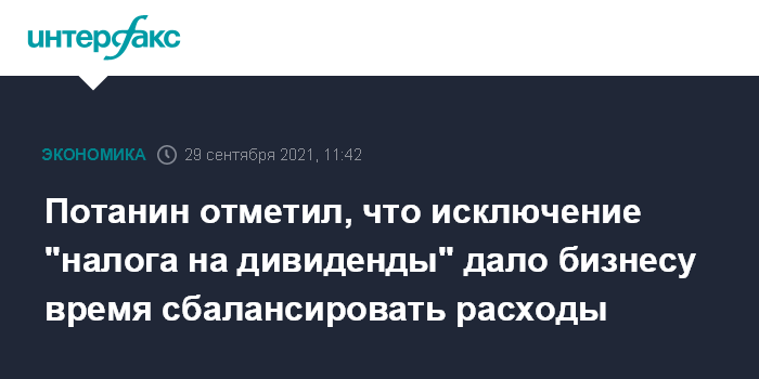 Потанин отметил, что исключение "налога на дивиденды" дало бизнесу время сбалансировать расходы