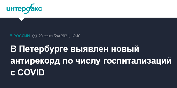 Москва. 29 сентября. INTERFAX.RU - За сутки в Петербурге госпитализировали 365 человек с коронавирусом, сообщается в ежедневной эпидемиологической справке, которую распространяет пресс-служба администрации губернатора.