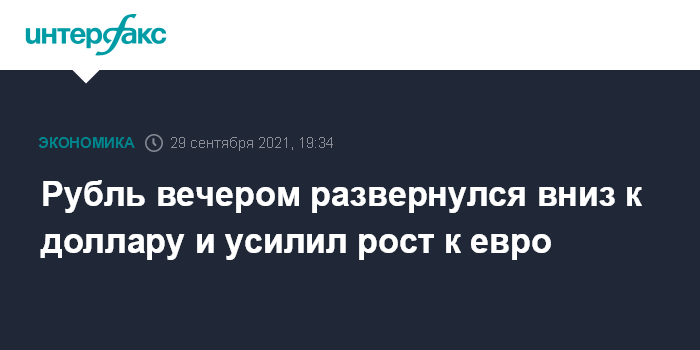 Москва. 29 сентября. INTERFAX.RU - Доллар перешел к небольшому повышению, евро, напротив, активно снижается на Московской бирже в среду вечером, рубль подрастает к бивалютной корзине в условиях опережающего снижения европейской валюты.