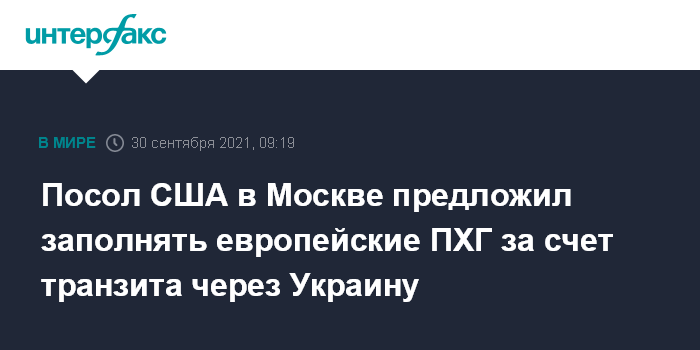 Посол США в Москве предложил заполнять европейские ПХГ за счет транзита через Украину