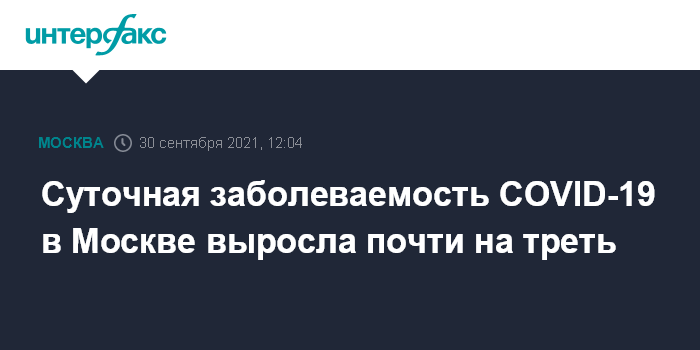 Москва. 30 сентября. INTERFAX.RU - Почти 4 тыс. случаев COVID-19 выявили в Москве за сутки, это соответствует показателям третьей декады июля 2021 года, суточная заболеваемость выросла почти на треть, следует из данных оперативного штаба по контролю ситуации с коронавирусом.