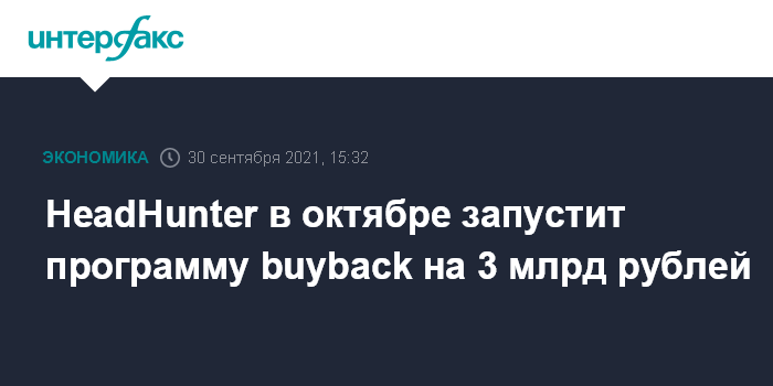 HeadHunter в октябре запустит программу buyback на 3 млрд рублей