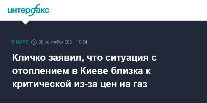Москва. 30 сентября. INTERFAX.RU - Инфраструктура в Киеве технически готова к началу отопительного сезона, но высокие цены на газ и другие проблемы делают ситуацию близкой к критической, заявил мэр Киева Виталий Кличко во время коллегии Киевской городской государственной администрации.