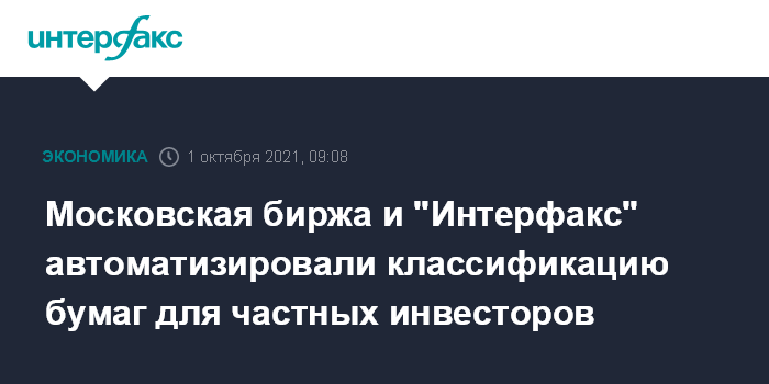 Московская биржа и "Интерфакс" автоматизировали классификацию бумаг для частных инвесторов
