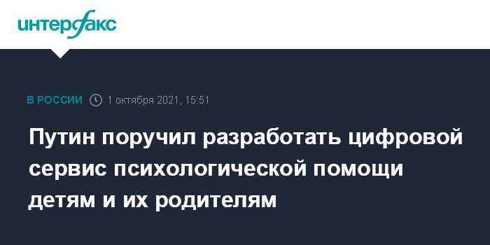 Путин поручил разработать цифровой сервис психологической помощи детям и их родителям