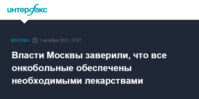 Власти Москвы заверили, что все онкобольные обеспечены необходимыми лекарствами
