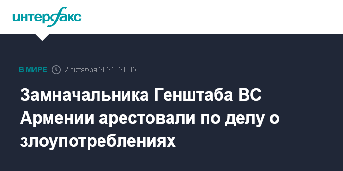 Замначальника Генштаба ВС Армении арестовали по делу о злоупотреблениях