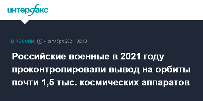 Москва. 4 октября. INTERFAX.RU - Более 1450 космических аппаратов выведено на орбиты в 2021 году под контролем Космических войск ВКС РФ, сообщили в Минобороны РФ.