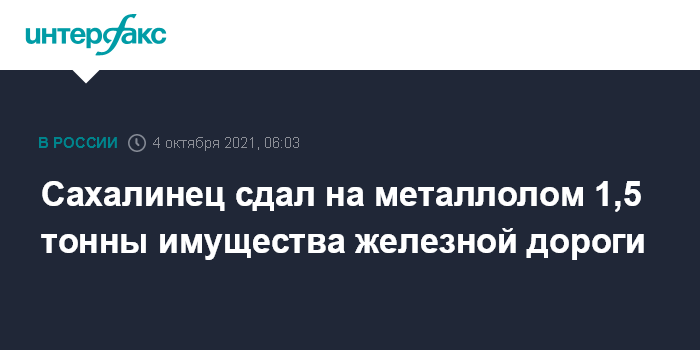 "Мужчина (34-летний житель города Холмска) регулярно сдавал в пункт приема металла части железнодорожных рельсов, металлический силовой кабель и другие металлические предметы, имеющие отношение к функционированию железной дороги", - говорится в сообщении.