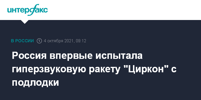 Москва. 4 октября. INTERFAX.RU - Российские военные провели первый испытательной пуск гиперзвуковой ракеты "Циркон" с подводной лодки.