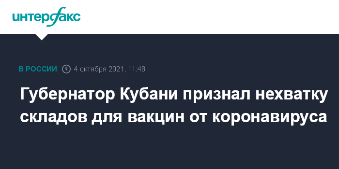 Москва. 4 октября. INTERFAX.RU - На Кубани не было перебоев с поставками вакцин от коронавируса, но препаратов не всегда хватало, потому что вакцины для всех желающих негде хранить и региону нужны дополнительные склады, заявил губернатор Краснодарского края Вениамин Кондратьев.