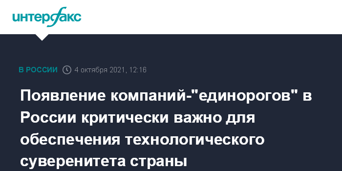 Появление компаний-"единорогов" в России критически важно для обеспечения технологического суверенитета страны