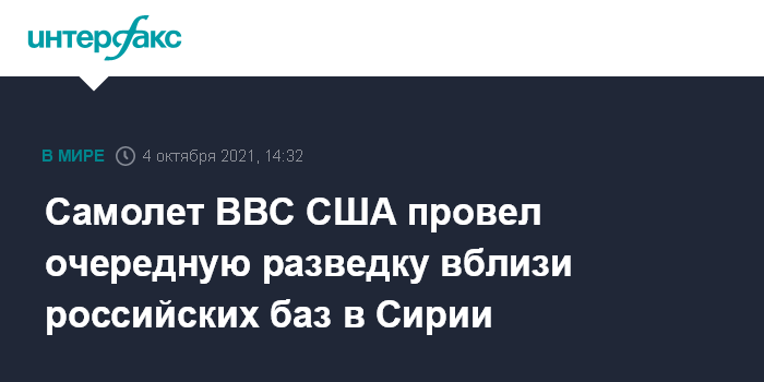 Аналогичный полет вблизи российских баз в Сирии этого американского самолета-разведчика был зафиксирован 2 октября.