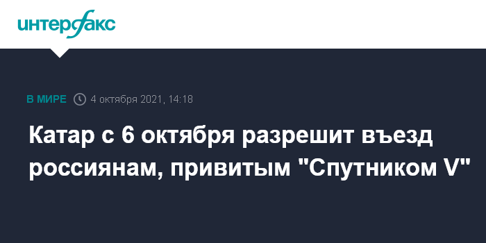 Катар с 6 октября разрешит въезд россиянам, привитым "Спутником V"