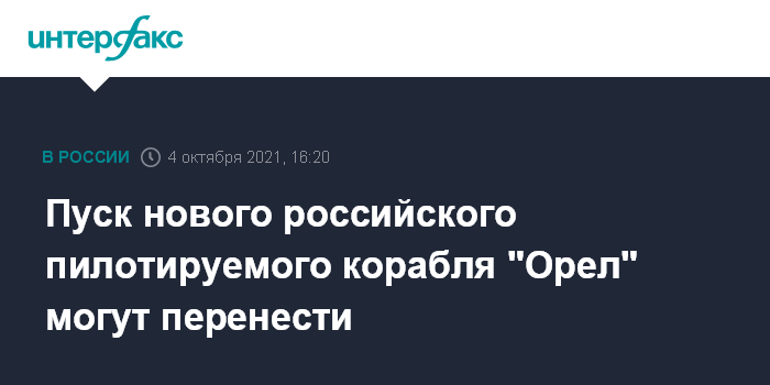 Москва. 4 октября. INTERFAX.RU - Пуск нового российского пилотируемого корабля "Орел" может быть отложен, сообщил генконструктор ракетно-космической корпорации "Энергия" Владимир Соловьев.