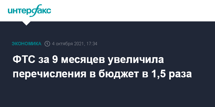 Москва. 4 октября. INTERFAX.RU - Федеральная таможенная служба (ФТС) РФ за январь-сентябрь 2021 года перечислила в федеральный бюджет 4 трлн 808 млрд рублей, что на 49% больше, чем за аналогичный период 2020 года (3 трлн 217 млрд рублей), говорится в сообщении службы.