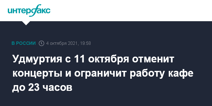 Удмуртия с 11 октября отменит концерты и ограничит работу кафе до 23 часов