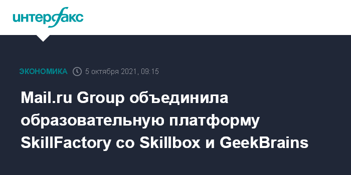 Москва. 5 октября. INTERFAX.RU - Образовательный холдинг Mail.ru Group, созданный при участии IT-предпринимателя Александра Галицкого и основателей Skillbox - Skillbox Holding Limited, пополнился еще одним активом из портфеля интернет-компании.