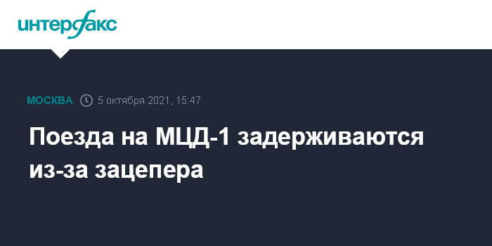 Москва. 5 октября. INTERFAX.RU - На МЦД-1 и Белорусском направлении МЖД в сторону области задерживаются несколько поездов. Об этом сообщается в телеграм-канале столичного департамента транспорта во вторник.