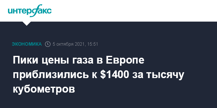 Пики цены газа в Европе приблизились к $1400 за тысячу кубометров