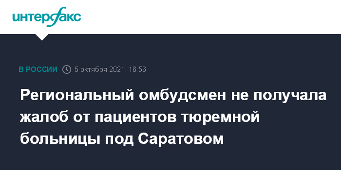 Москва. 5 октября. INTERFAX.RU - Заключенные, находящиеся на лечении в тюремной больнице в Саратовской области, не жаловались на пытки со стороны сотрудников, сообщила "Интерфаксу" уполномоченный по правам человека в регионе Надежда Сухова.