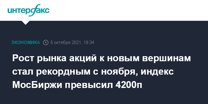 Рост рынка акций к новым вершинам стал рекордным с ноября, индекс МосБиржи превысил 4200п