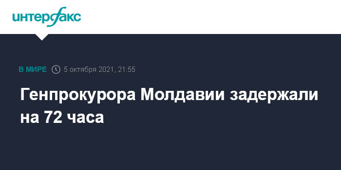 Москва. 5 октября. INTERFAX.RU - Генпрокурор Молдавии Александр Стояногло задержан на 72 часа, сообщил во вторник вечером прокурор Виктор Фуртунэ, который ведет возбужденное против него уголовное дело.