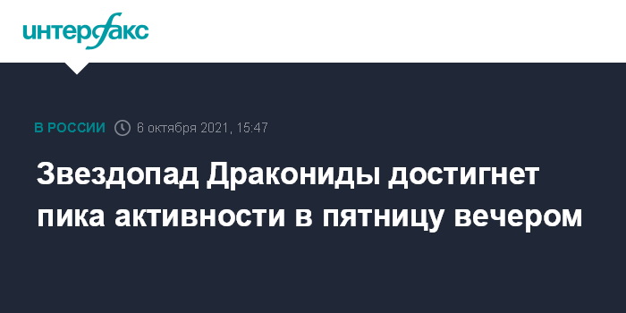 Москва. 6 октября. INTERFAX.RU - Звездопад Дракониды можно будет увидеть в пятницу после 22:00, сообщается на сайте столичного планетария.