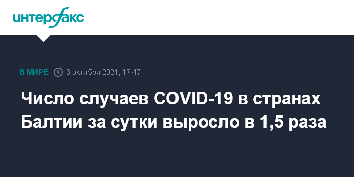 Москва. 6 октября. INTERFAX.RU - В странах Балтии за минувшие сутки зарегистрировано 5 273 новых случая коронавируса, в том числе 2 556 в Литве, 1 671 - в Латвии и 1 046 - в Эстонии.