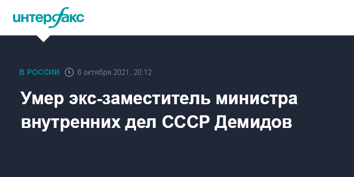 Умер экс-заместитель министра внутренних дел СССР Демидов
