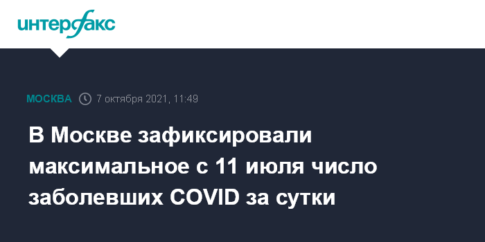 В Москве зафиксировали максимальное с 11 июля число заболевших COVID за сутки