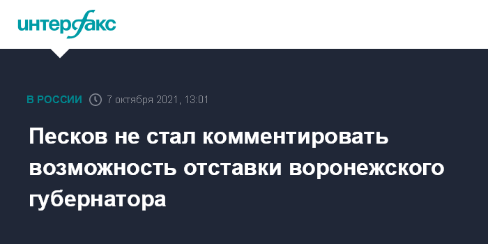Песков не стал комментировать возможность отставки воронежского губернатора