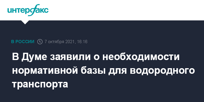 В Думе заявили о необходимости нормативной базы для водородного транспорта