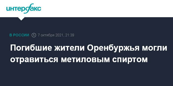 Москва. 7 октября. INTERFAX.RU - Жители Оренбургской области, погибшие после употребления суррогатного алкоголя, предположительно, употребляли метиловый спирт, сообщила заместитель председателя правительства области по социальной политике - министр здравоохранения Татьяна Савинова в эфире "России-24" в четверг.