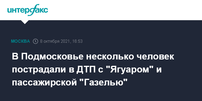 "В 14:50 на 7 километре автодороги Орехово-Зуево - Верея - Новониколаевка произошло попутное столкновение "Газели" и легкового автомобиля "Ягуар". В результате ДТП шесть человек получили травмы различной степени тяжести", - сказали "Интерфаксу" в пресс-службе регионального управления МВД.