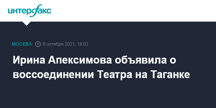 Ирина Апексимова объявила о воссоединении Театра на Таганке