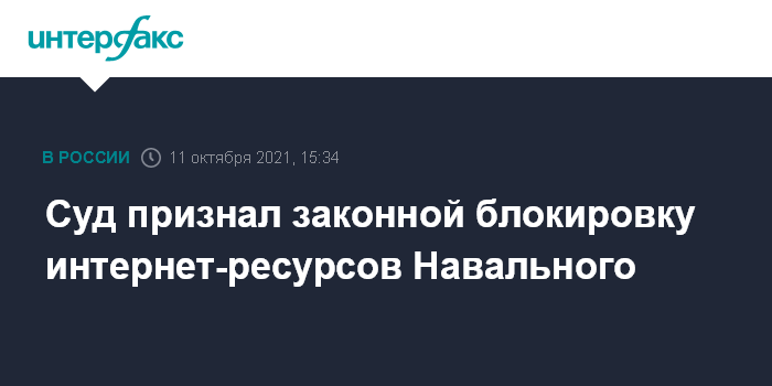 Москва. 11 октября. INTERFAX.RU - Тверской суд Москвы отклонил иск Алексея Навального к Генеральной прокуратуре РФ и Роскомнадзору из-за блокировки различных связанных с оппозиционером ресурсов.